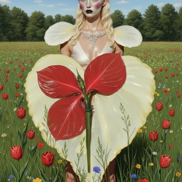 The result is a dreamlike world where beauty feels amplified, almost artificial, yet emotionally charged. It is a study of contrast: nature and technology, softness and sheen, delicacy and boldness. A garden not just in bloom, but reimagined through the lens of generative imagination.