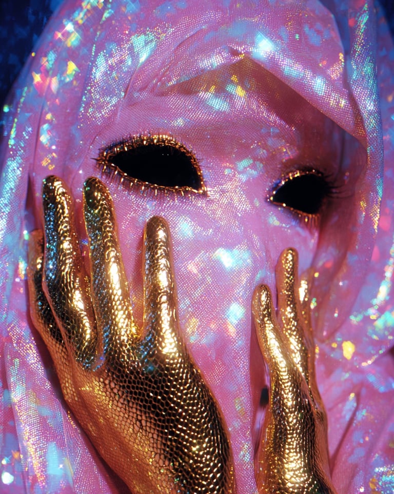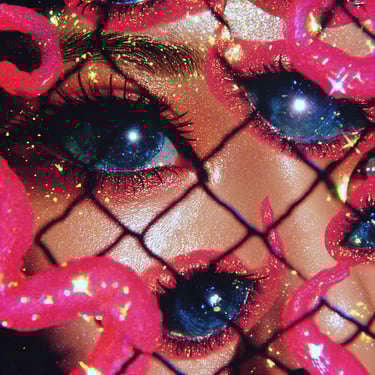 Pink, snakes, eyes, fabrics, glitch.
