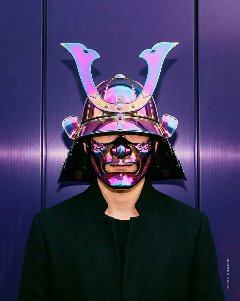 Discover "RONIN: KABUTO COLLECTION", a new collections our italian artist Arlandini Tommaso, aka Tommy Bu, AI Artist and Graphic Designer from Florence.